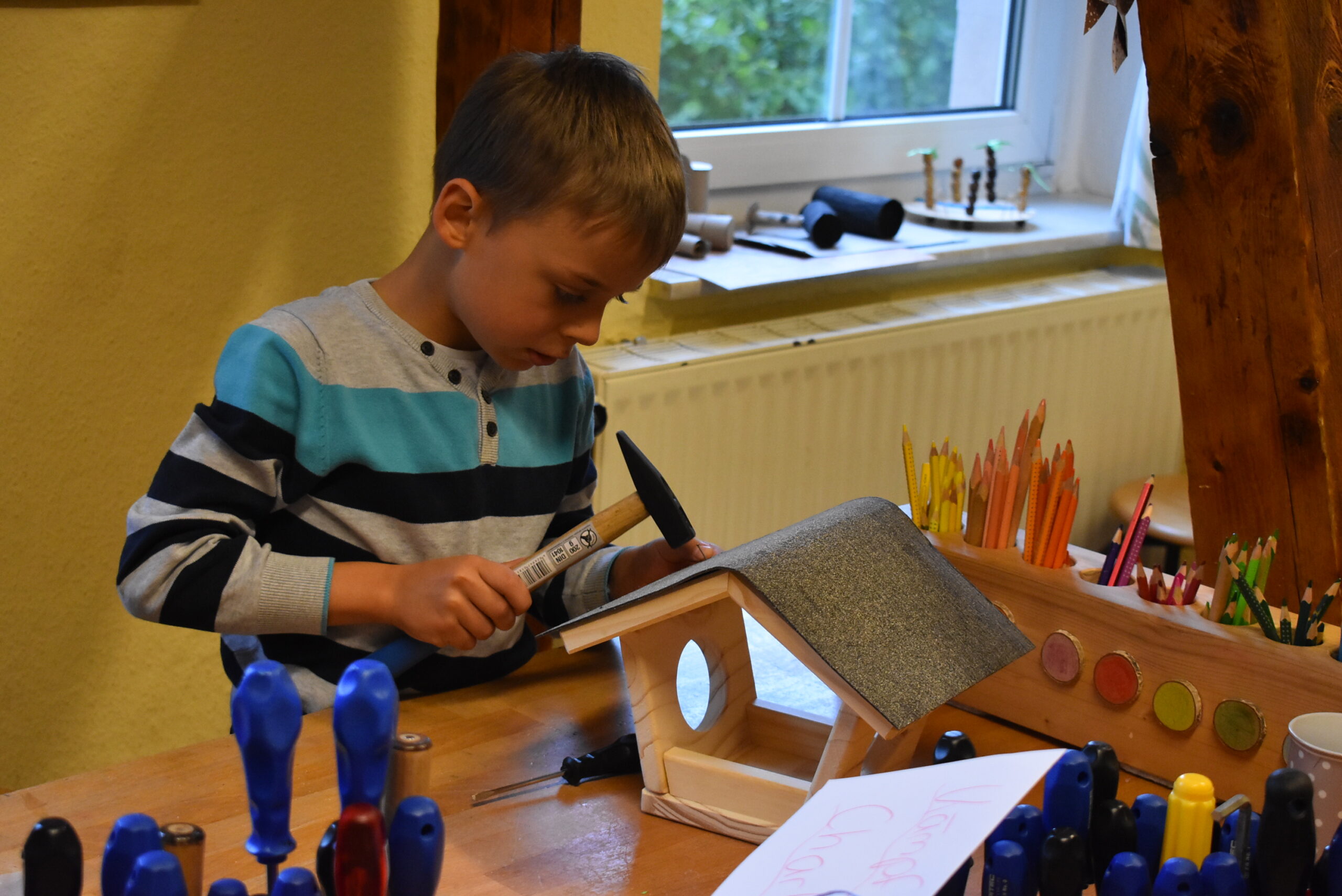 Im Moment ist das Nahrungsangebot groß, doch Winter und Mangel kommen gewiss. Damit  unsere tierischen Freunde nicht Hunger leiden müssen, haben einige Kinder Vogelfutterhäuschen zusammengebaut. Den Bausatz haben Mitarbeiter des Lebenshilfewerk Hohenstein-Ernstthal hergestellt. Ein erster Futtergast, ein grüner Stoffvogel, ist schon während der Herbstferien eingezogen.